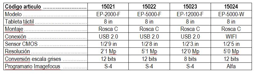 Tabla comparativa cámaras tableta Edupad:
